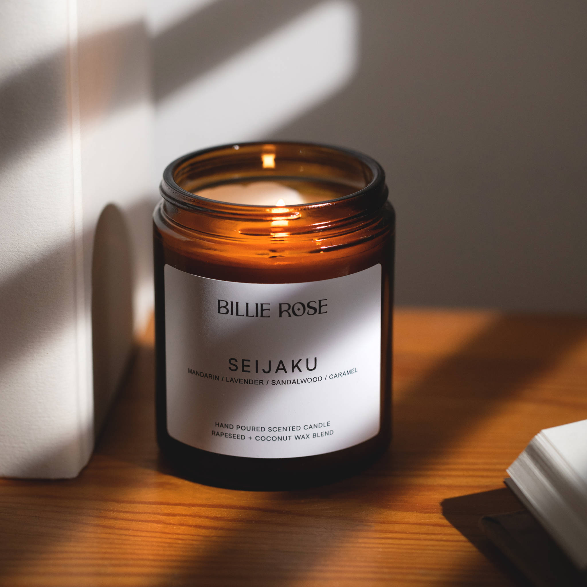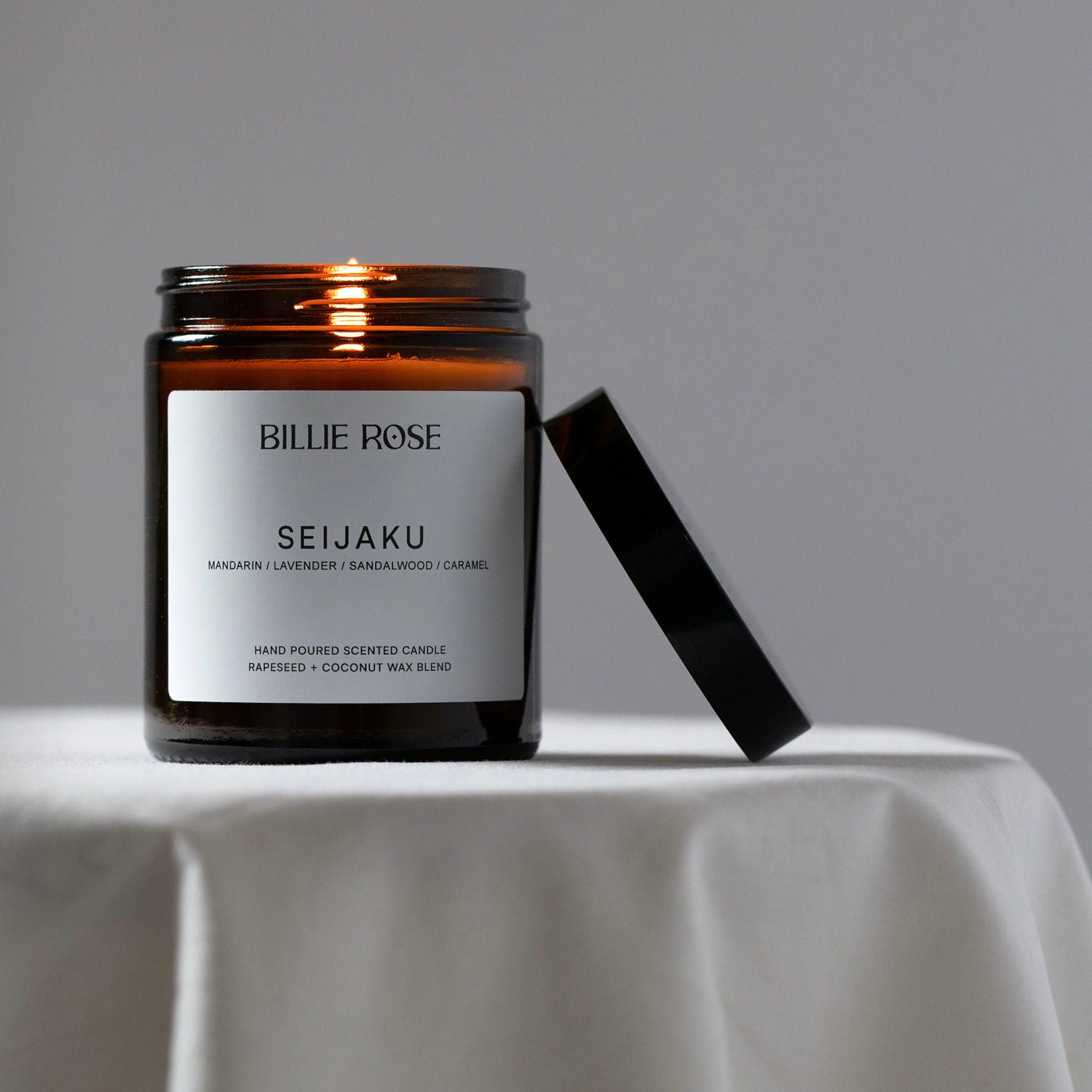 In the stillness, thoughts drift away like leaves on a stream. Time slows down. Worries of the day dissipate. A sense of calm and inner peace emerges. Explore the Seijaku candle scent mood board.